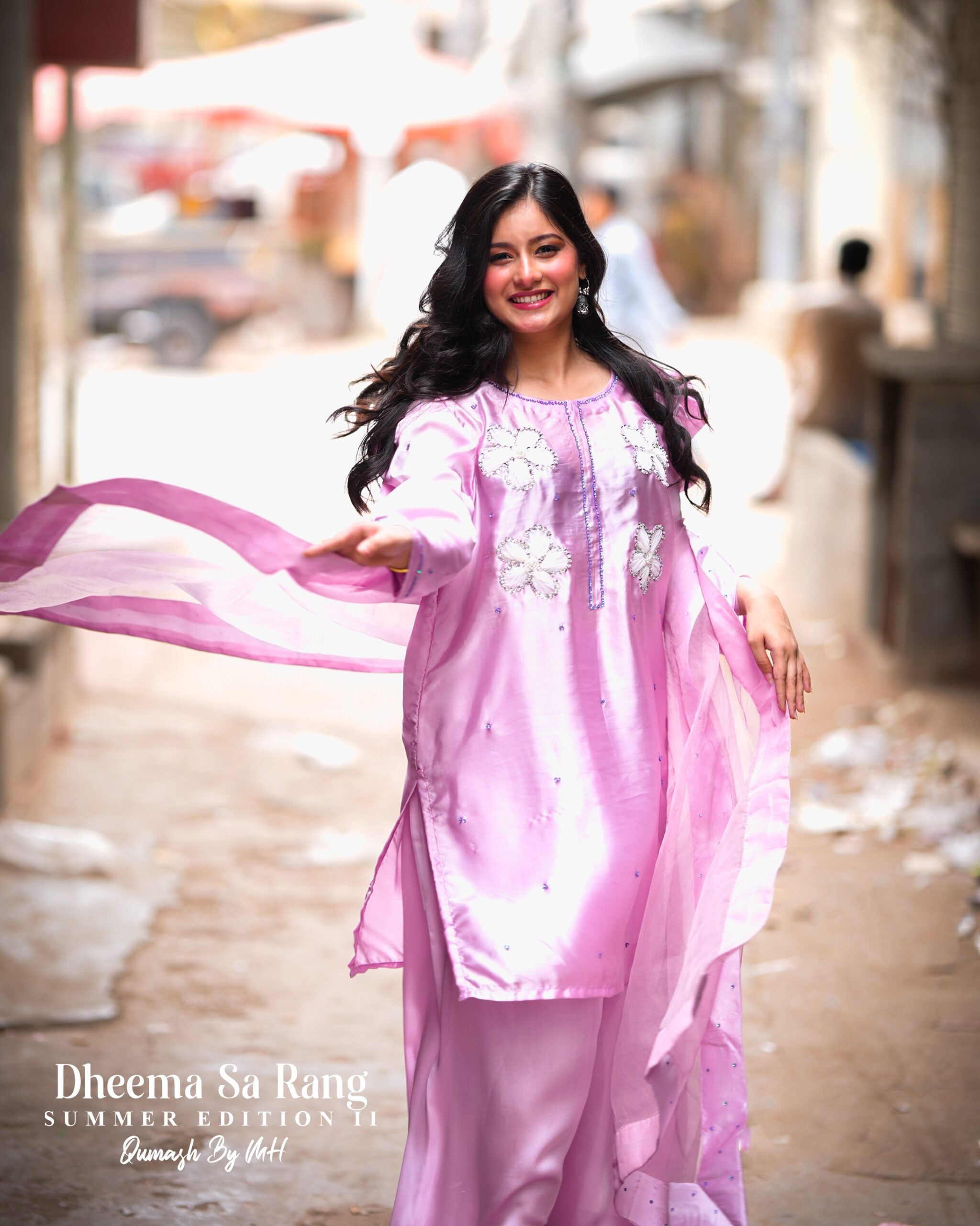 💗 Dheema Sa Rang — Summer Edition II | Qumash By MH 💗 Gulbahar Glow — Hand-Embellished Silk 3-Piece Set